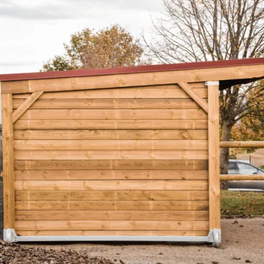 * Stabile Konstruktion mit 15×15 cm Pfosten und 44 mm Trägern für optimale Haltbarkeit.* Dank des Schlittens kann die Weidehütte einfach Ihren Tieren auf der Weide folgen.